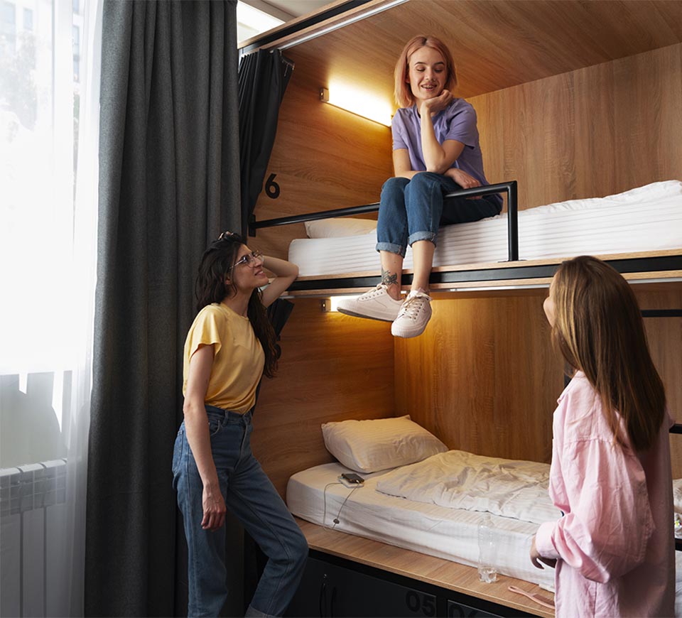 Typische Unterkünfte bei jüngeren Schülergruppen sind Jugendherbergen und Hostels, bei älteren (Berufs-)Schülern können es auch Ferienwohnungen sein.